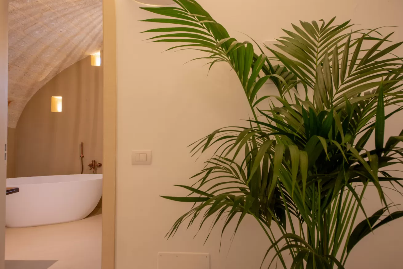 Luminosa e raffinata, la Camera Salvia può ospitare fino a 4 persone. Dispone di una camera da letto da 45 mq con letto matrimoniale e un divano letto per una o due persone, oltre a un ampio bagno privato con doppio lavabo, doccia walk-in e vasca idromassaggio con casse bluetooh e cromoterapia, pensato per offrire relax e comfort assoluti.